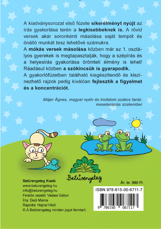 Bizonyára Ön is azt szeretné, hogy gyermeke, unokája az iskolában jól teljesítsen, és ezért mindent meg is tesz.A Helyes mesék egy különleges fejlesztő sorozat, amivel a gyerekek játékosan, szórakozva tanulhatják meg a helyesírást. Kedves állatmeséken, verseken keresztül, megszeretik az olvasást és kialakul bennük az olvasás szeretete.