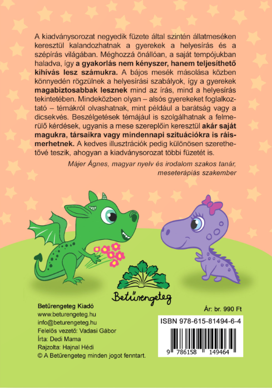 Bizonyára Ön is azt szeretné, hogy gyermeke, unokája az iskolában jól teljesítsen, és ezért mindent meg is tesz.A Helyes mesék egy különleges fejlesztő sorozat, amivel a gyerekek játékosan, szórakozva tanulhatják meg a helyesírást. Kedves állatmeséken, verseken keresztül, megszeretik az olvasást és kialakul bennük az olvasás szeretete.